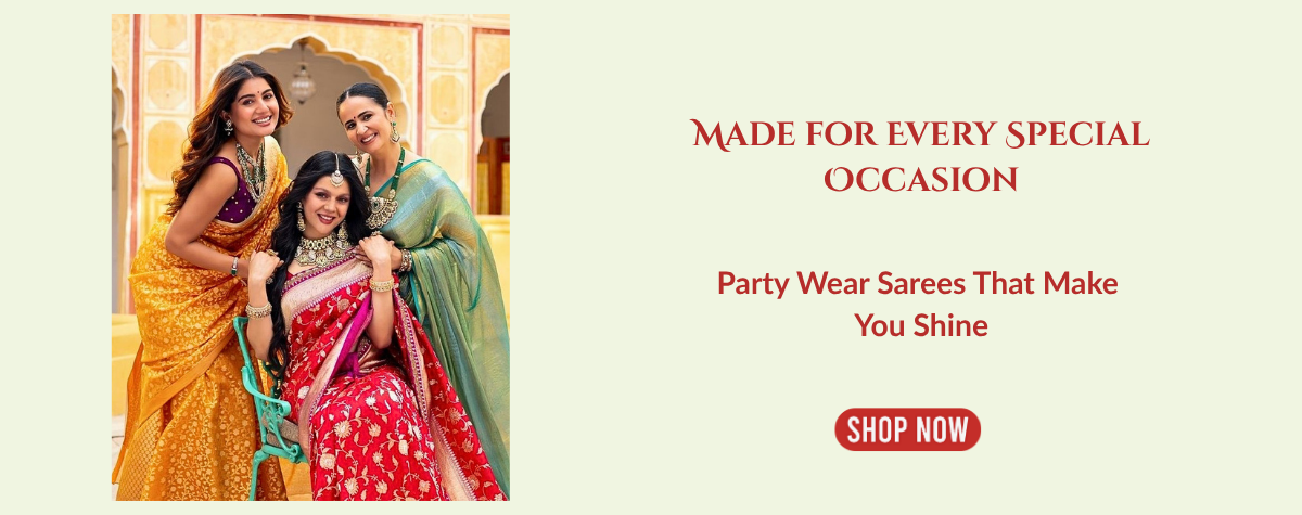 Discover designer party wear sarees crafted with intricate details and premium fabrics....