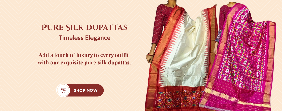 Shop 100% pure silk Ikat dupattas – handwoven, elegant & timeless. Perfect...