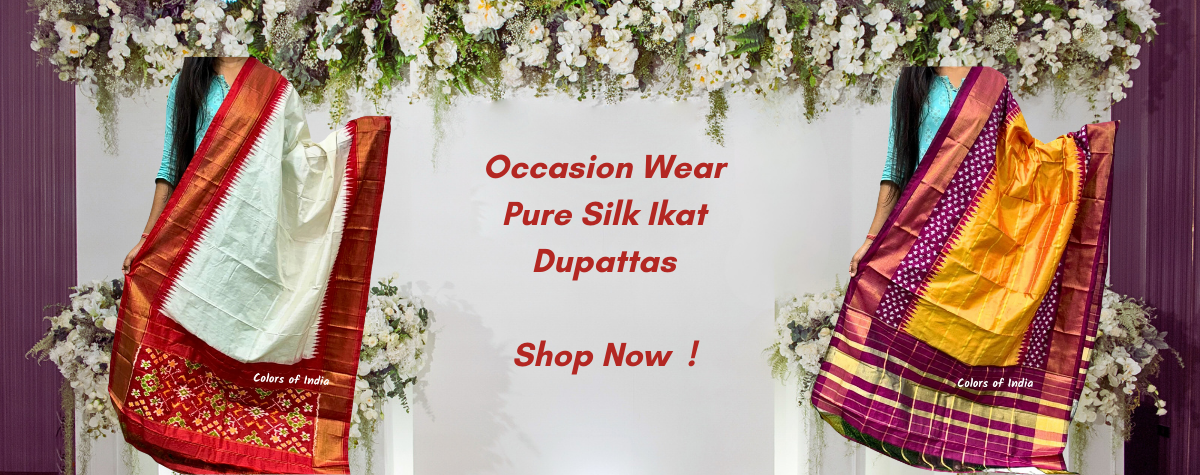 Shop 100% pure silk Ikat dupattas – handwoven, elegant & timeless. Perfect...
