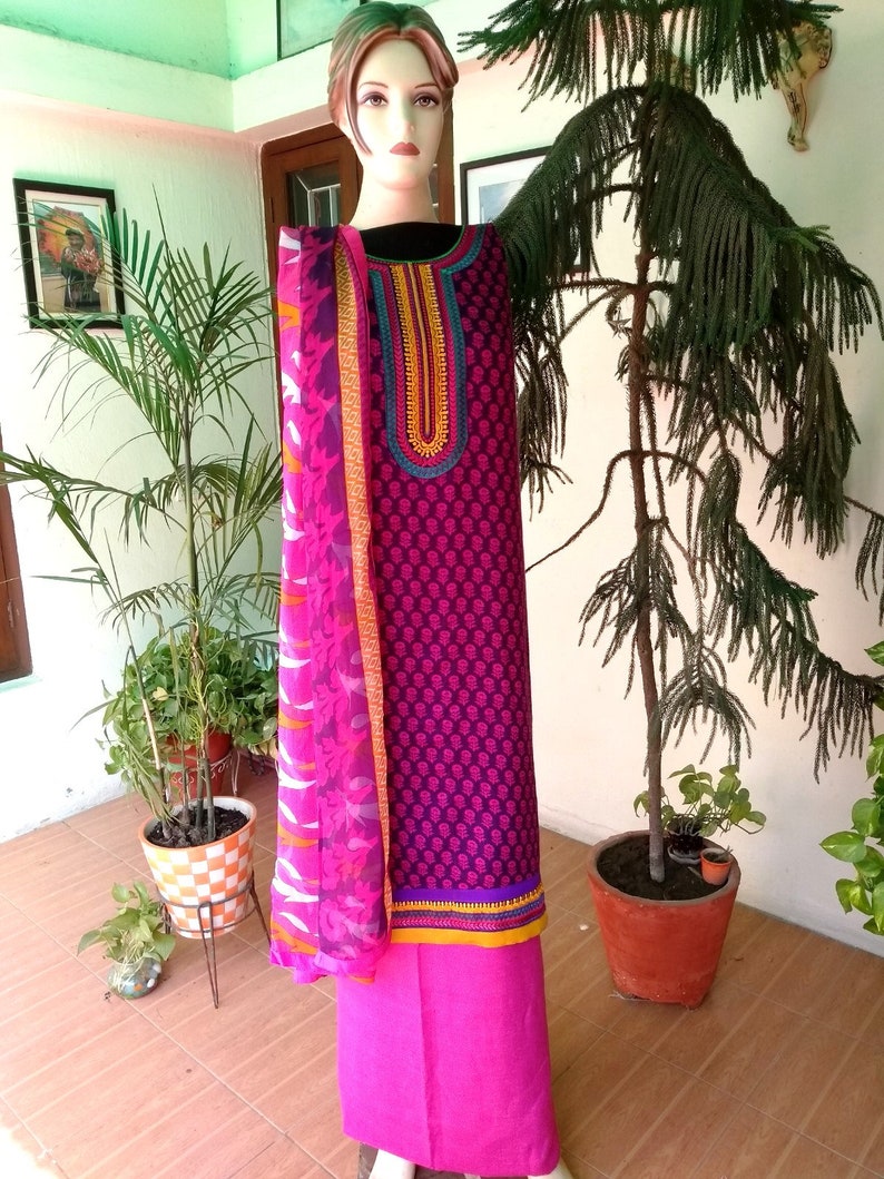 Pink / Purple Viscose blend salwar suit dupatta set  , FREE DELIVERYÂ